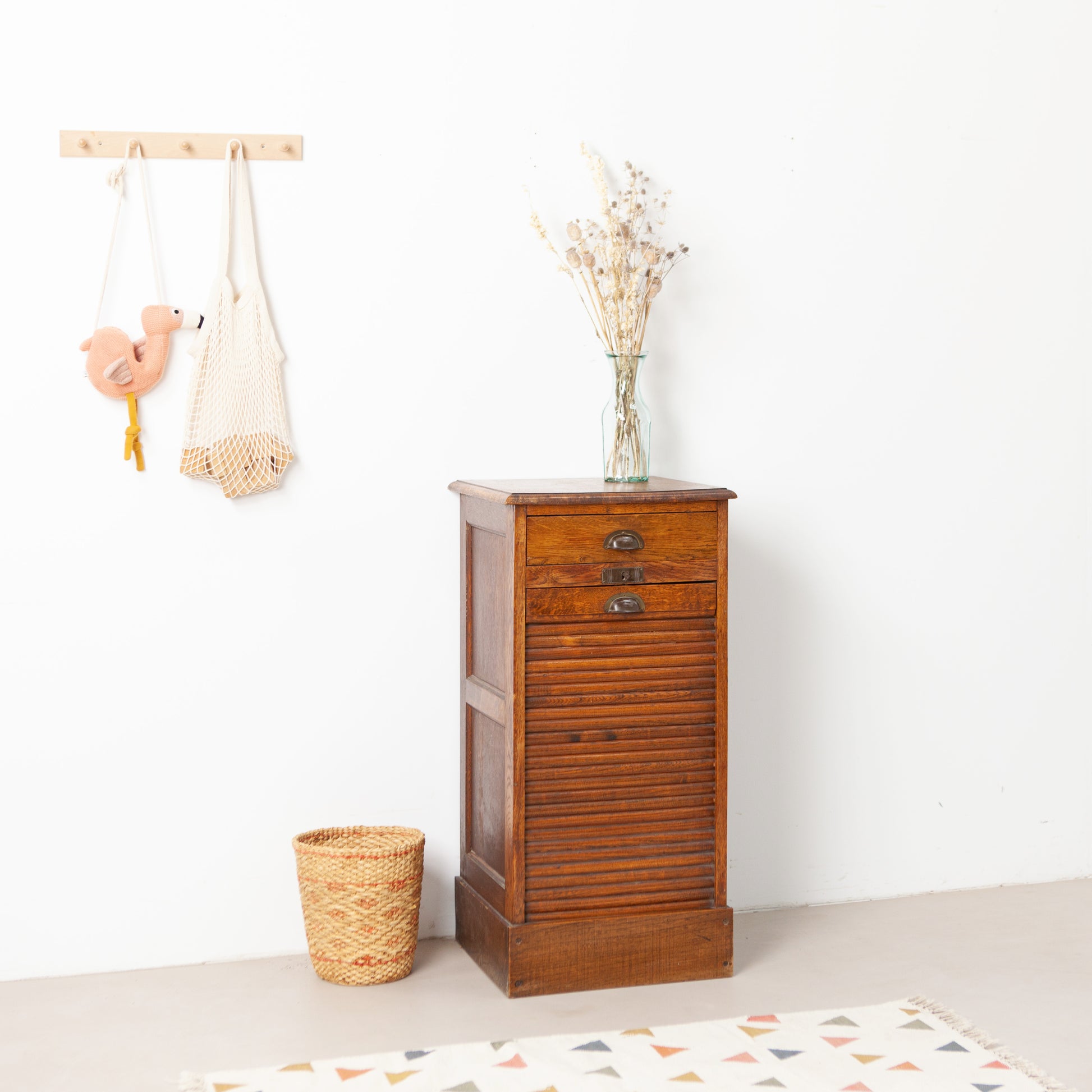 Wat een schatje is dit mooie eikenhouten archiefkastje! Geweldig om bijvoorbeeld de knutselspullen in op te bergen.