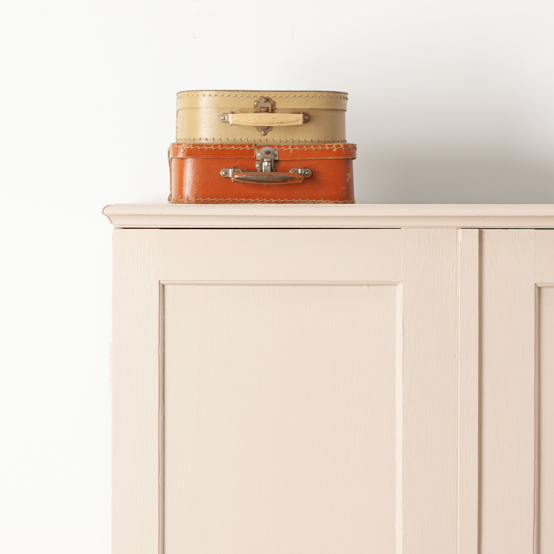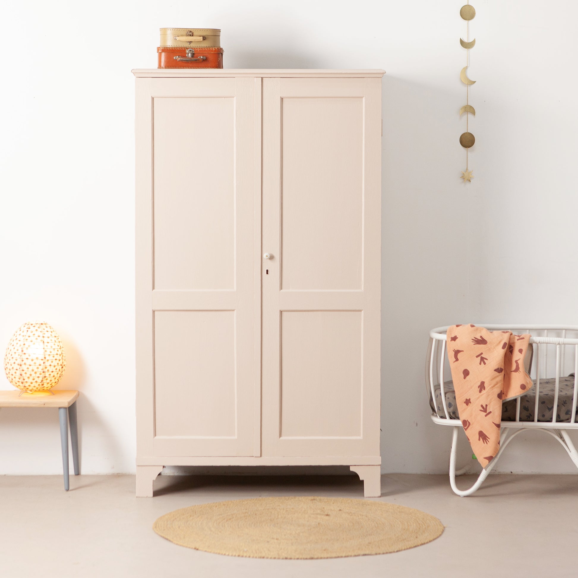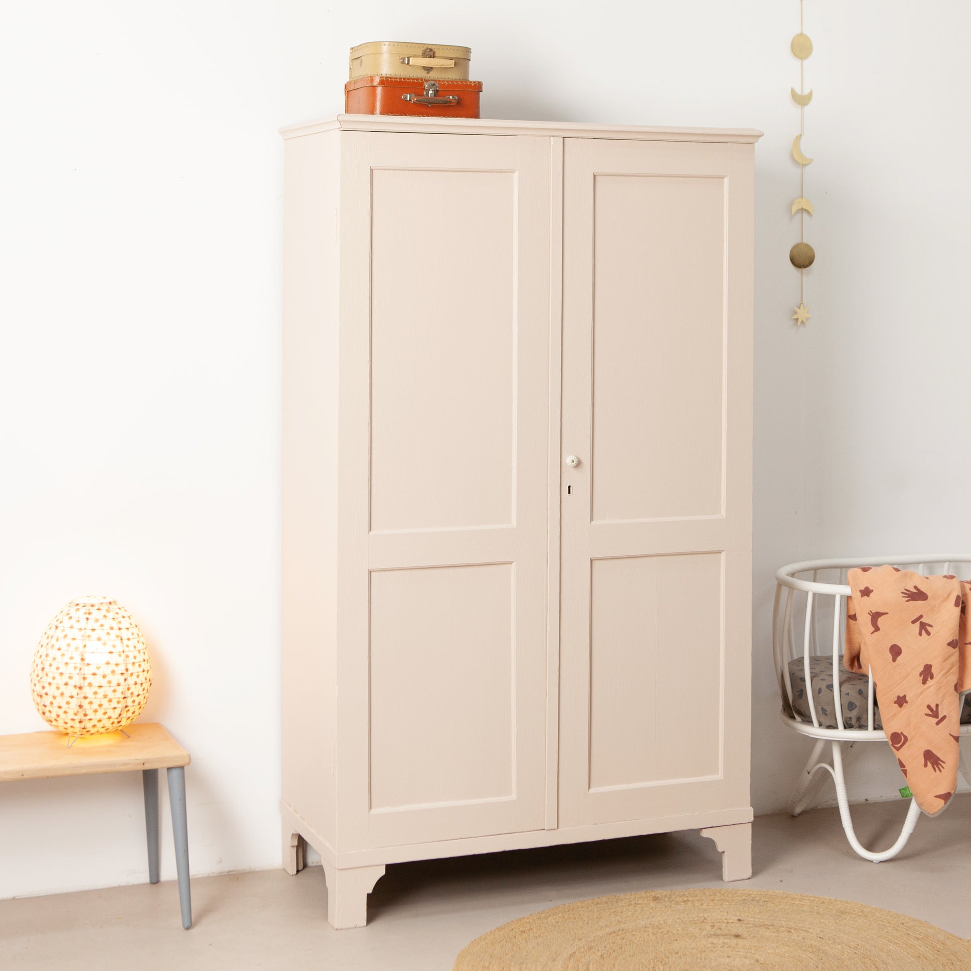 De kast heeft een prachtige zachte kleur gekregen. Een lieve poederroze, die hem perfect staat