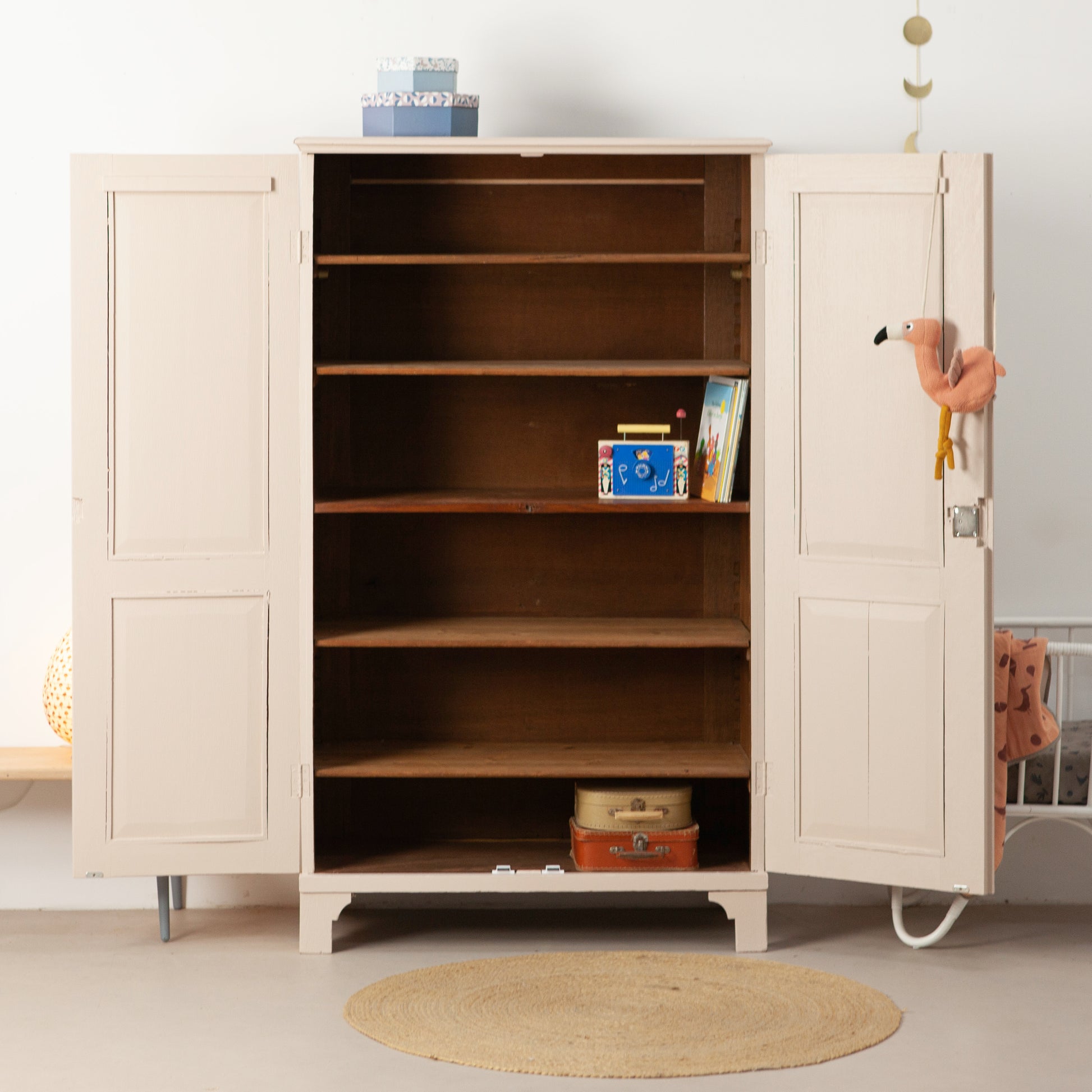Wat is dit een lieve vintage kast! En perfect voor op de baby- of kinderkamer. Dit compacte model is niet te groot maar beschikt wel over verrassend veel opbergruimte. Ook zal deze kast geweldig zijn om speelgoed, boeken en spelletjes in op te bergen.