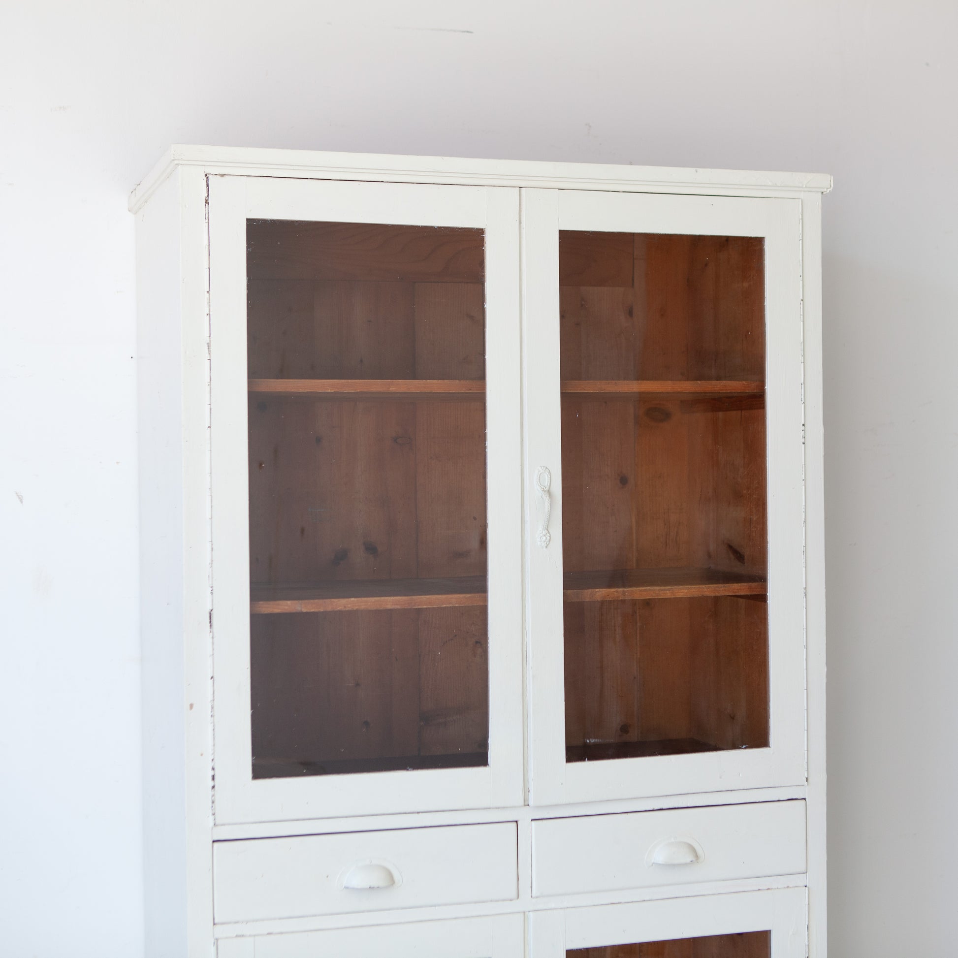 Een prachtige oude schoolkast. Met originele vintage ruitjes waar je je mooiste spulletje achter kunt neerzetten. We knappen deze mooierd heel graag voor je op!