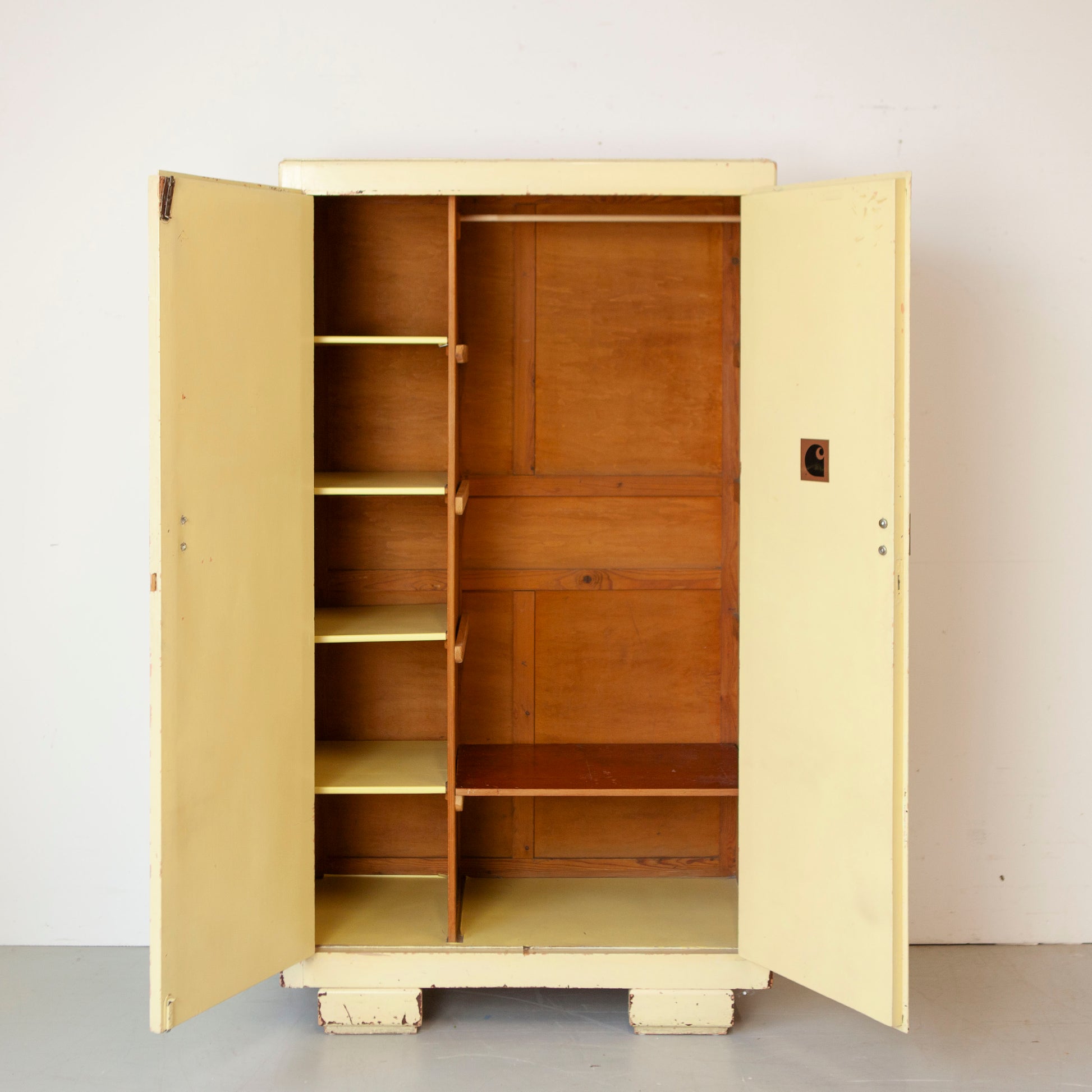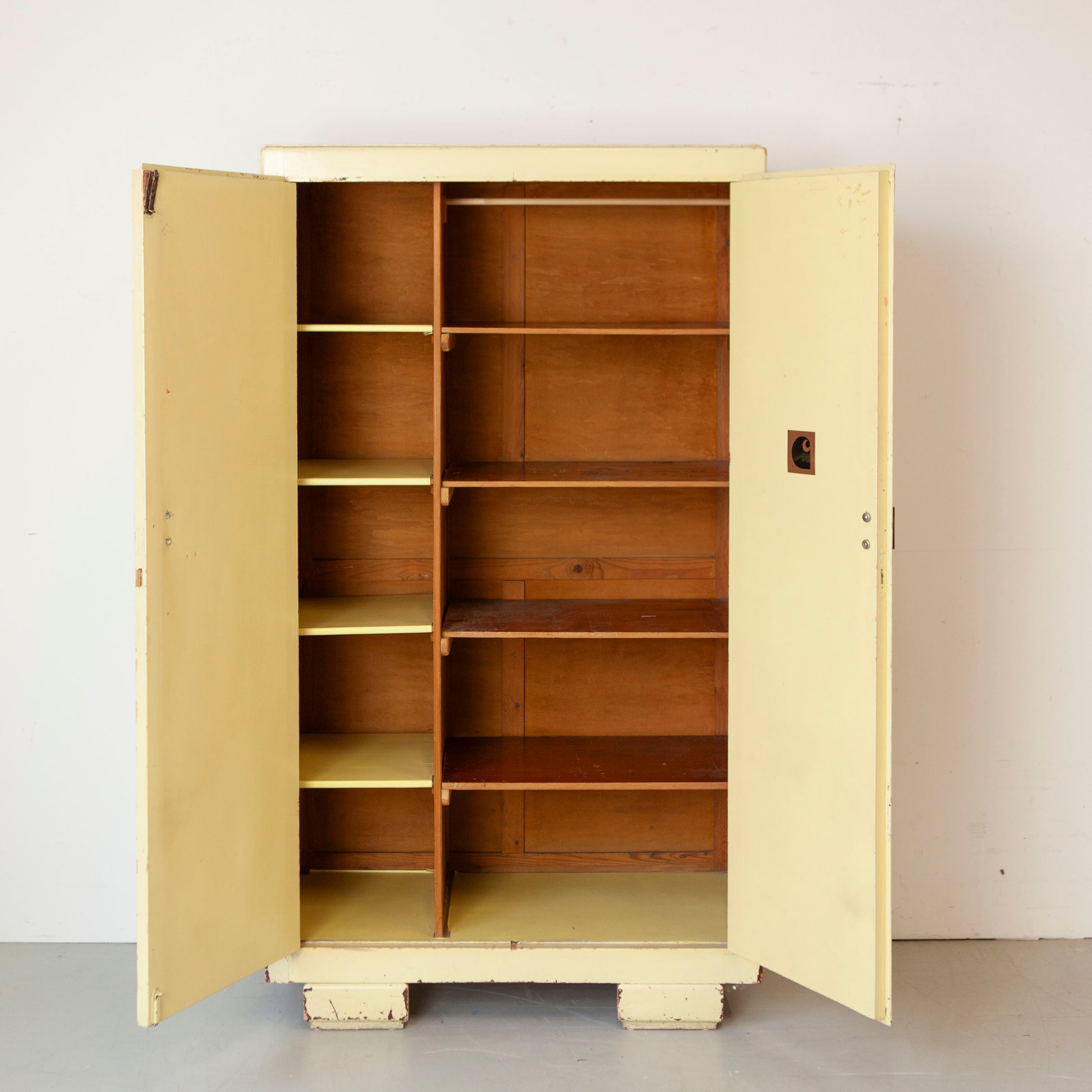 Een supermooie retro kast. De kast heeft strakke lijnen en is mooi vormgegeven, Achter de deuren zitten twee compartimenten met een complete, aan te passen inrichting, dus meer dan genoeg ruimte om kleding en andere spulletjes neer te leggen. We knappen deze kast graag voor je op!