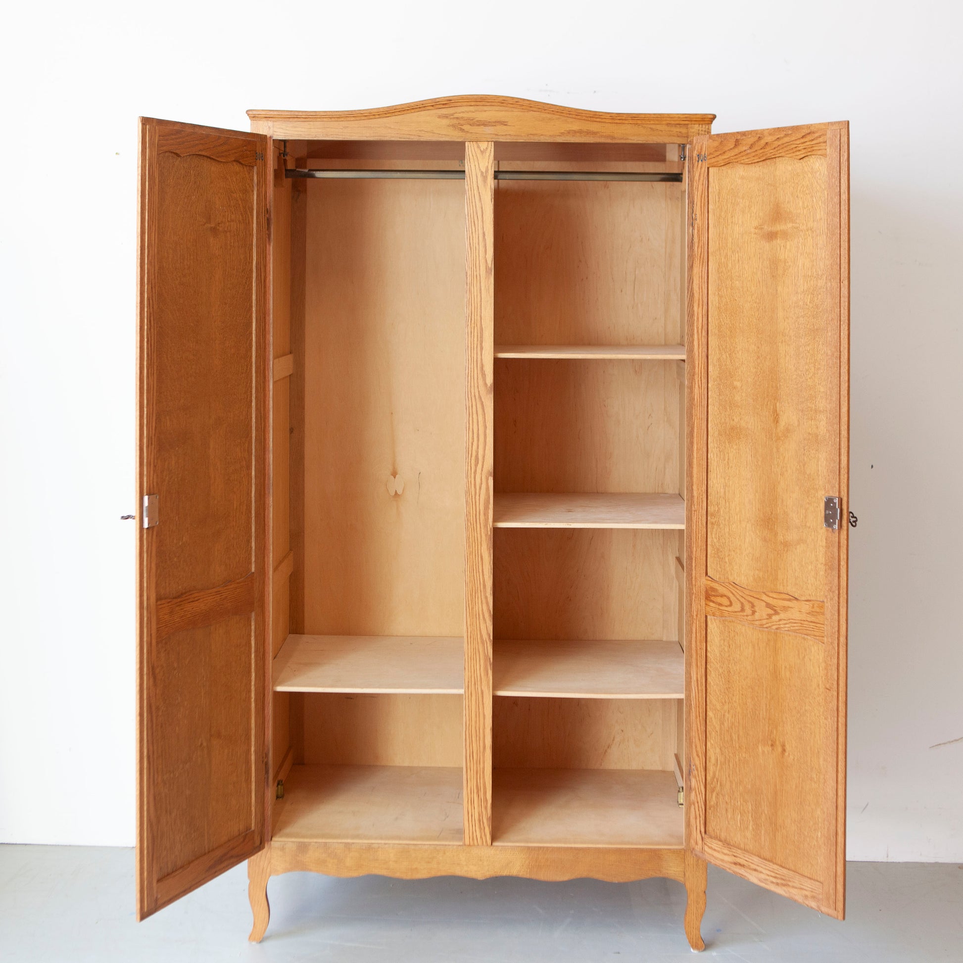 De kast heeft twee compartimenten. Aan de linkerkant heeft de kast een roede en een plankje en aan de rechterkant drie plankjes en ook een roede. Als je extra ruimte voor stapeltjes kleding zou willen kunnen we er uiteraard extra plankjes in maken.
