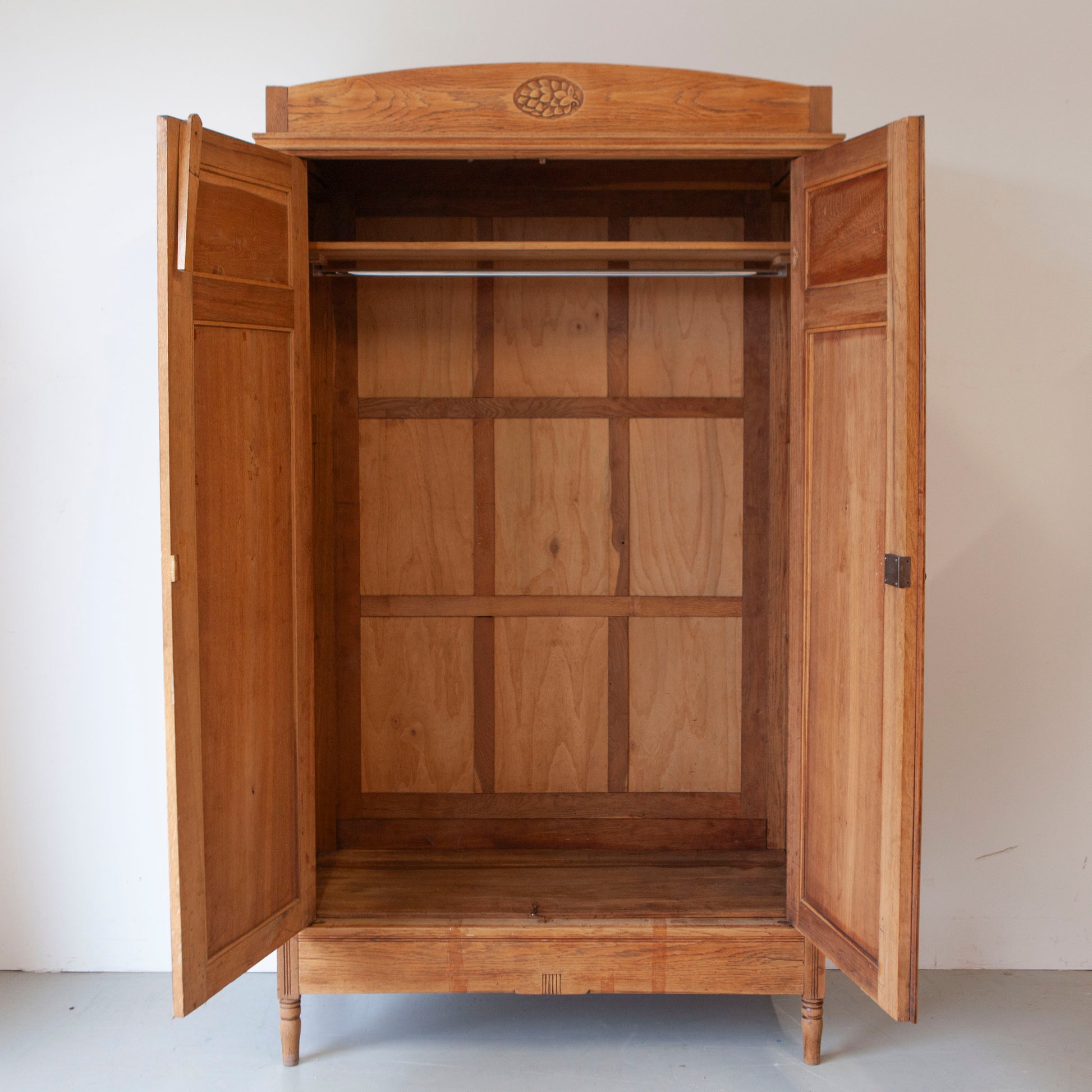 Een prachtige authentieke kast met heel mooi houtsnijwerk. Geheel demontabel dus ook gemakkelijk op een verdieping te plaatsen. Achter de twee deuren zit heel veel opbergruimte. Prachtig voor op de kinderkamer of bijvoorbeeld met extra planken in de woonkamer. We knappen deze mooierd heel graag voor jou op!