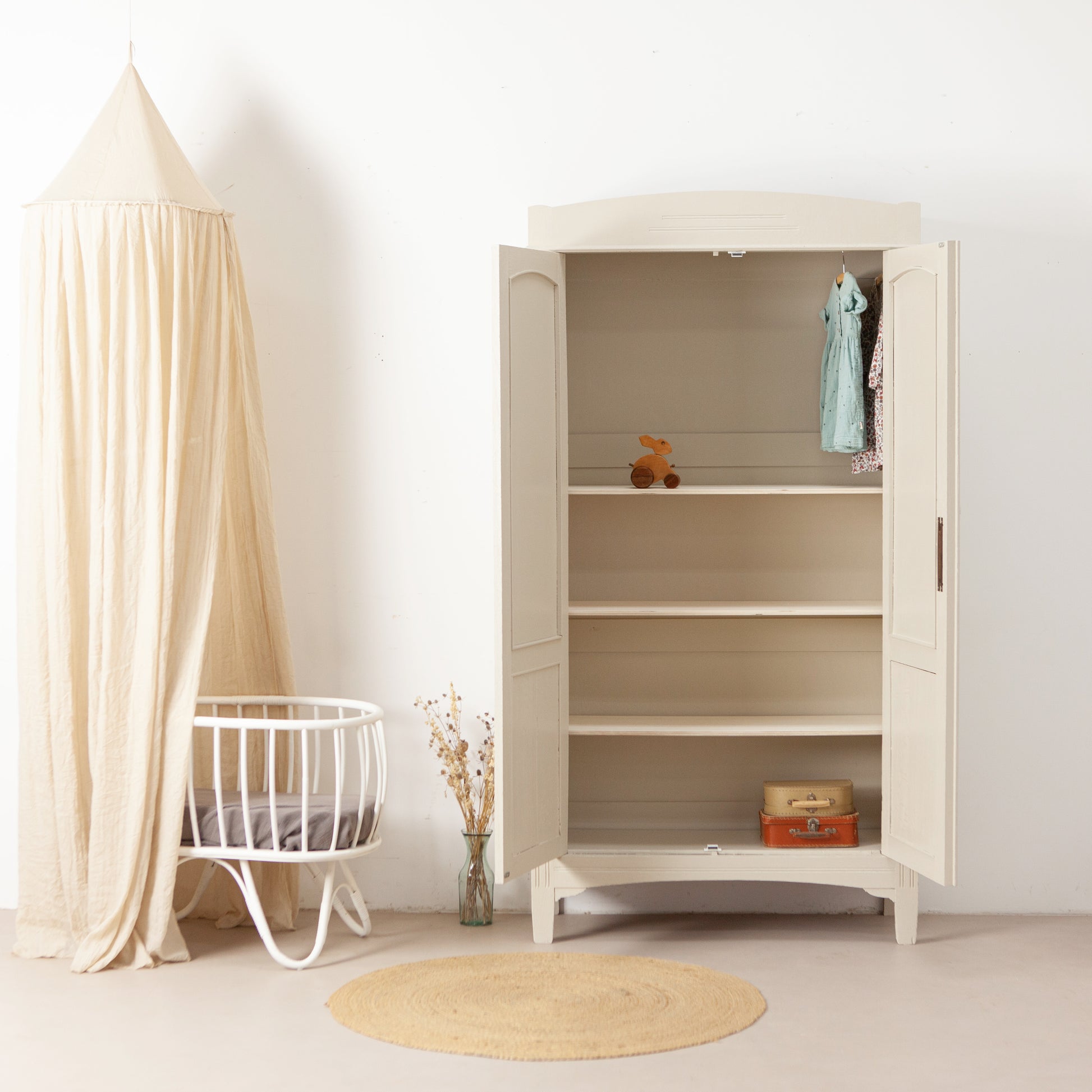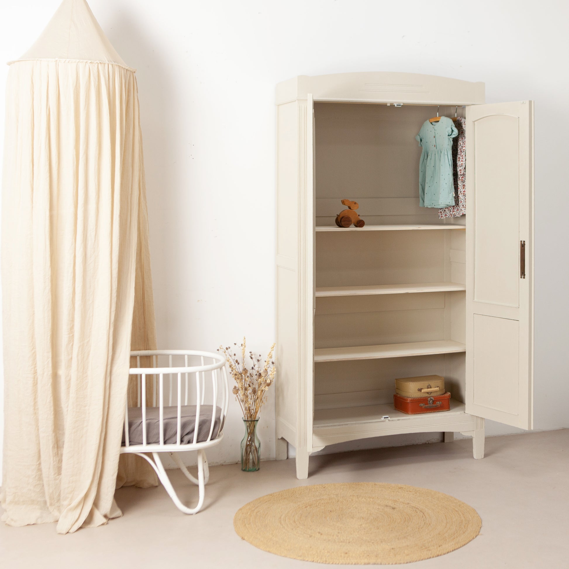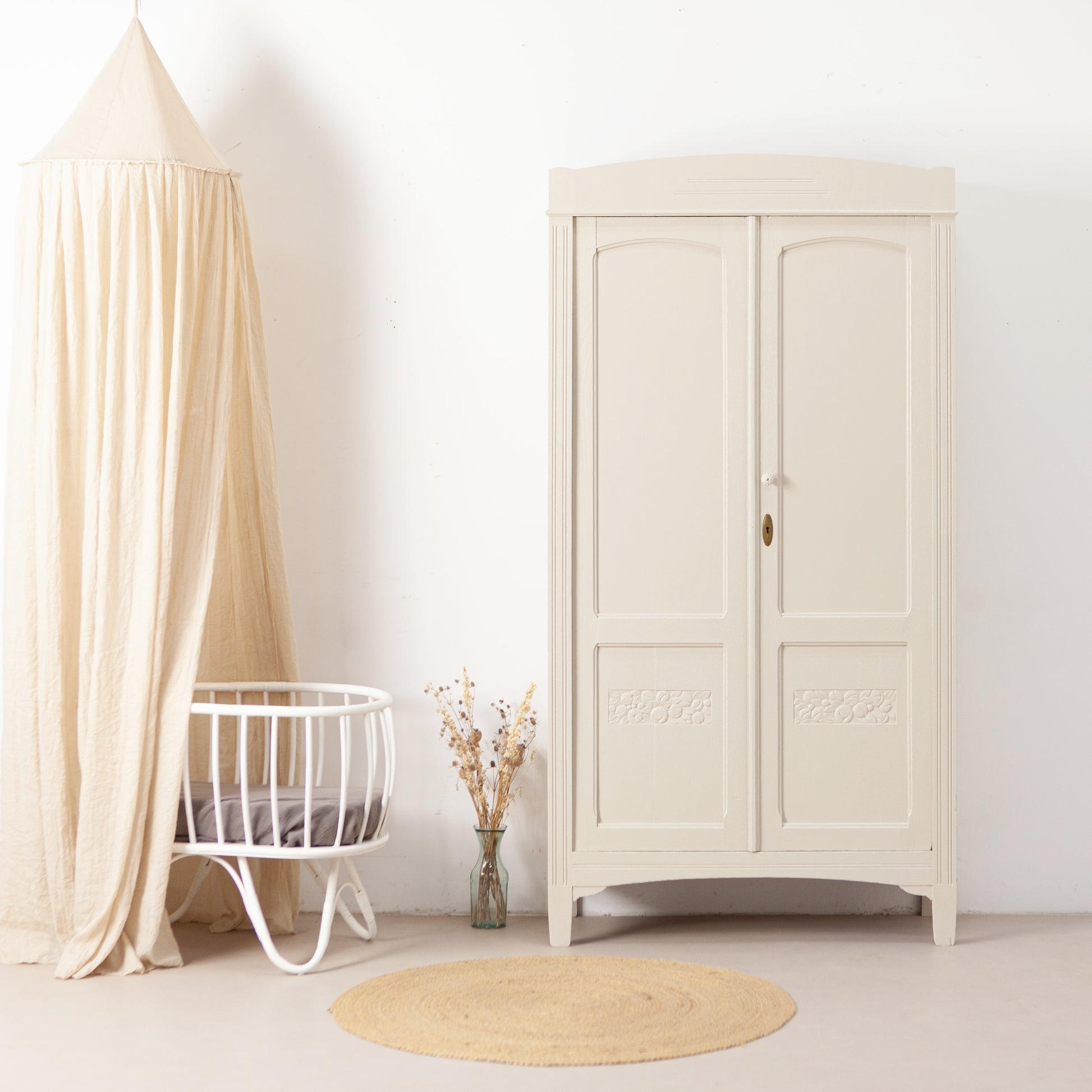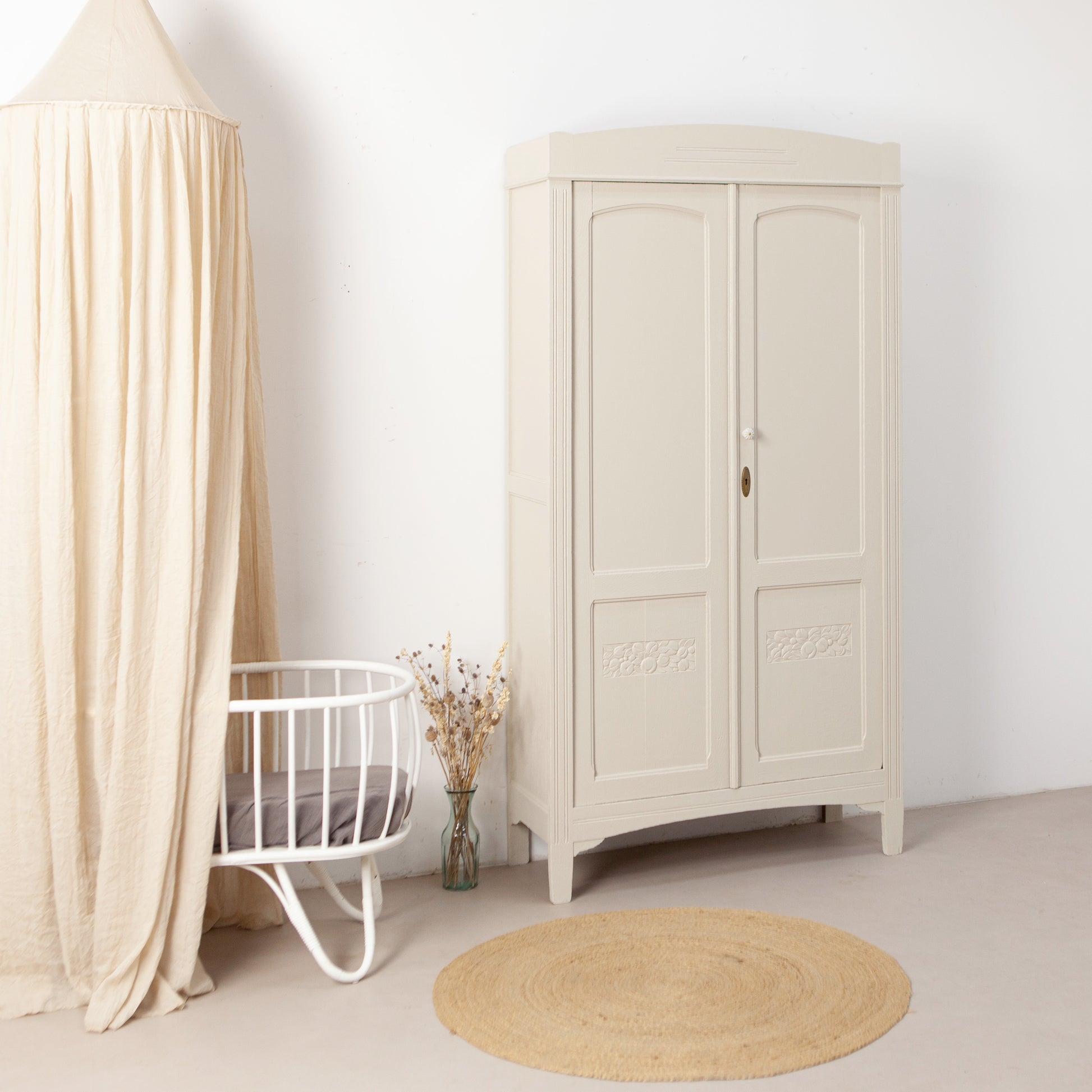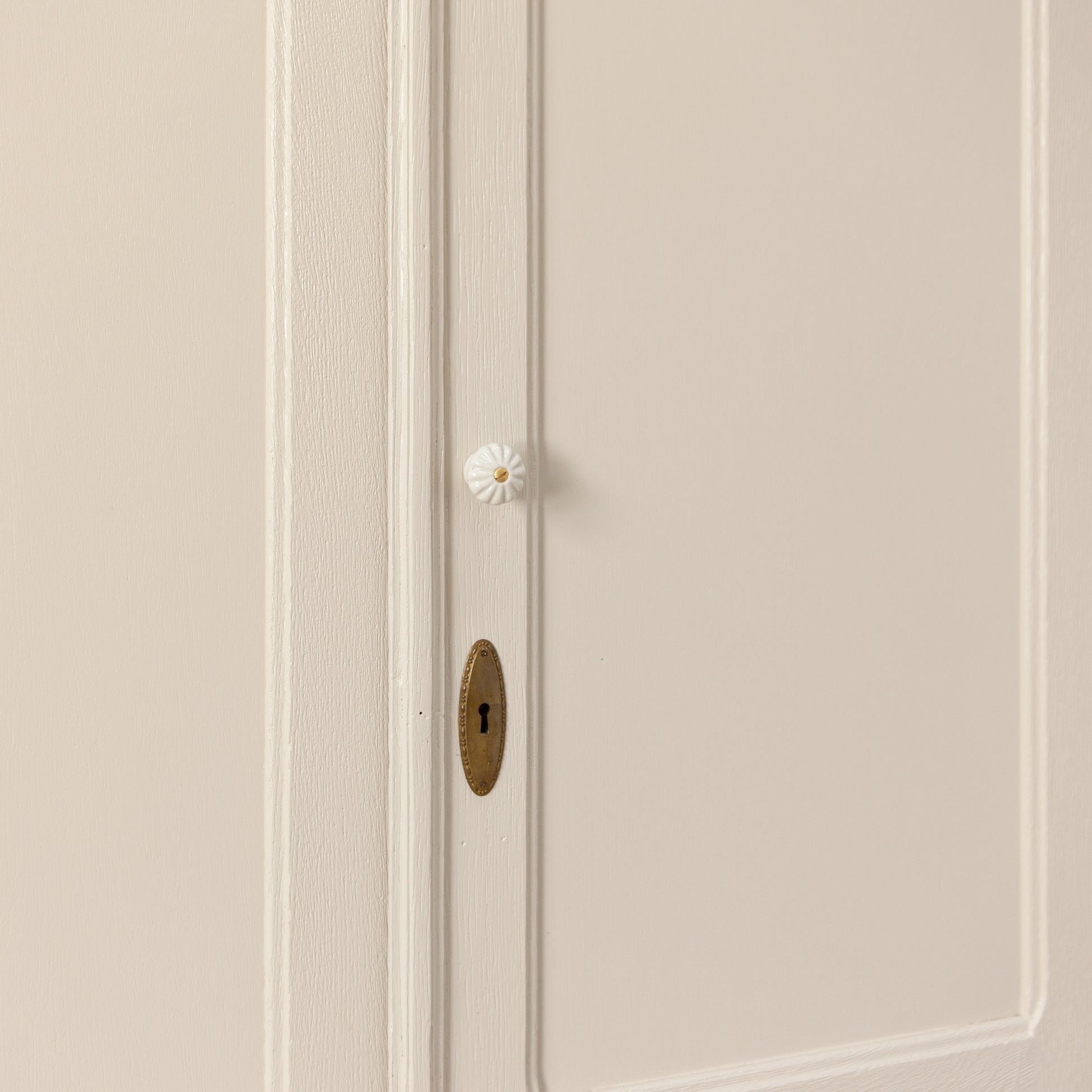 We hebben hem in deze rustige en stijlvolle zandkleur geschilderd, die hem perfect staat. De binnenkant van de kast hebben we ook geschilderd.