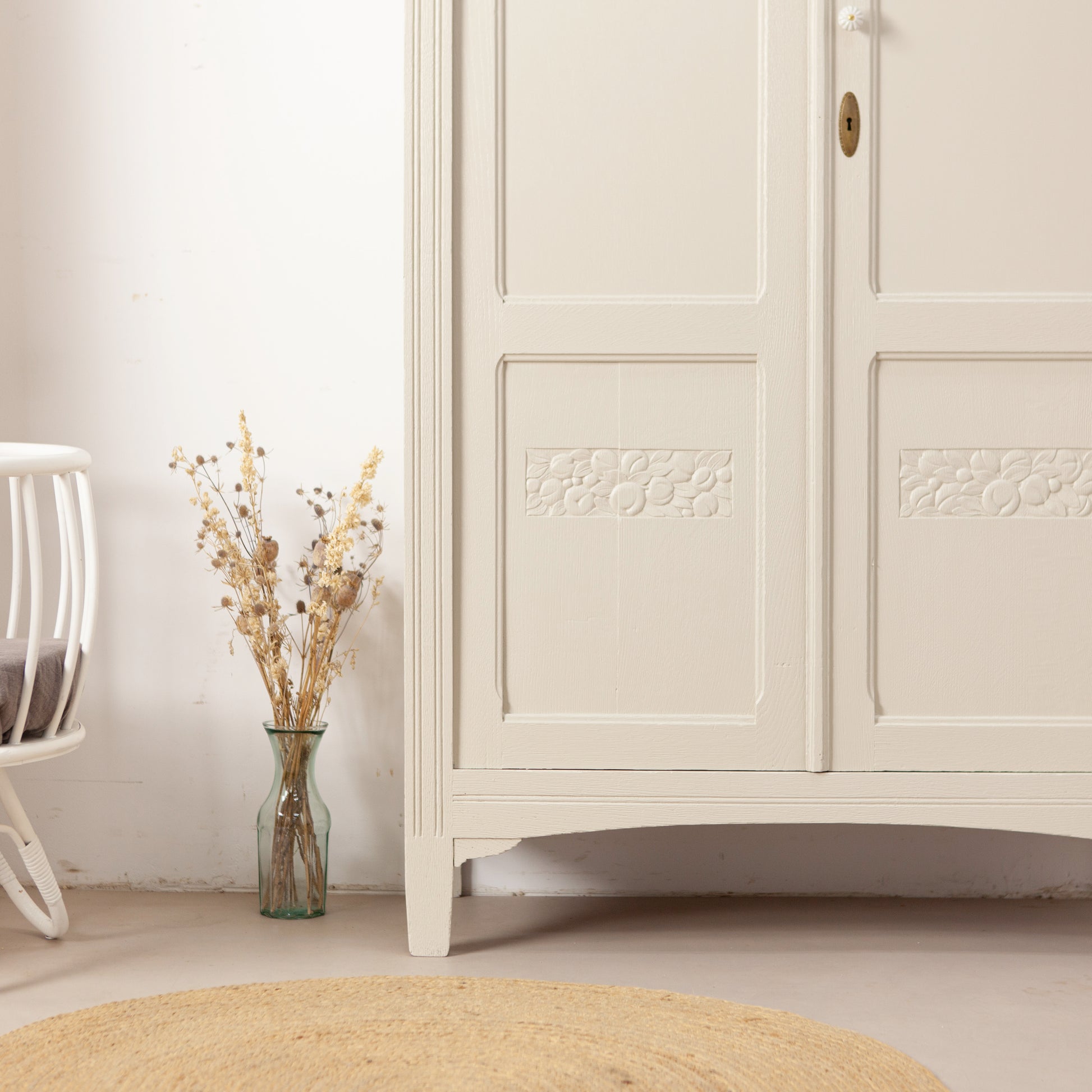 Wauw wat is deze kast mooi geworden! Met fijne details en een lief houtsnijwerkje op de deuren.