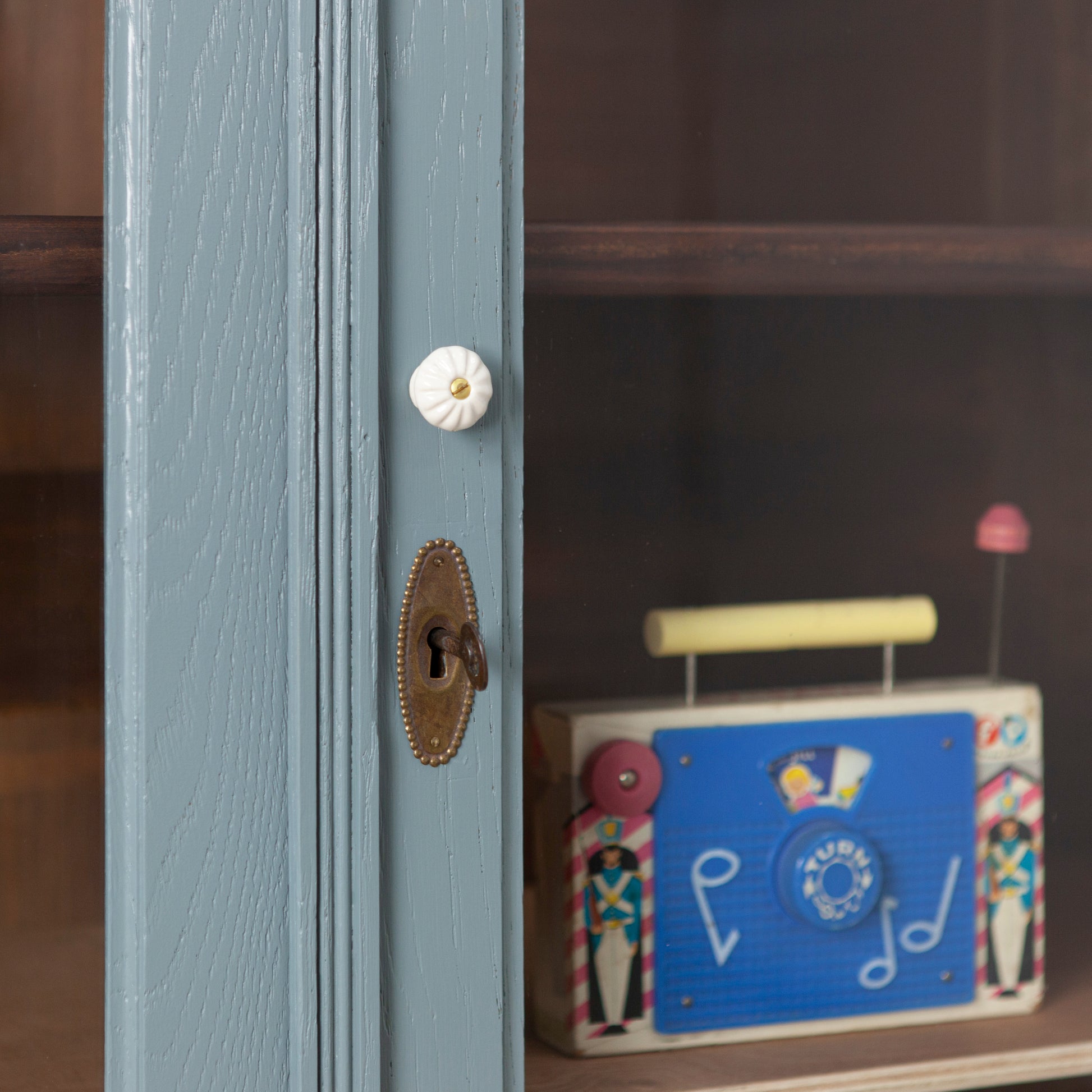 Ook heeft de kast een fijn vintage sleutelplaatje en porseleinen knopjes gekregen.